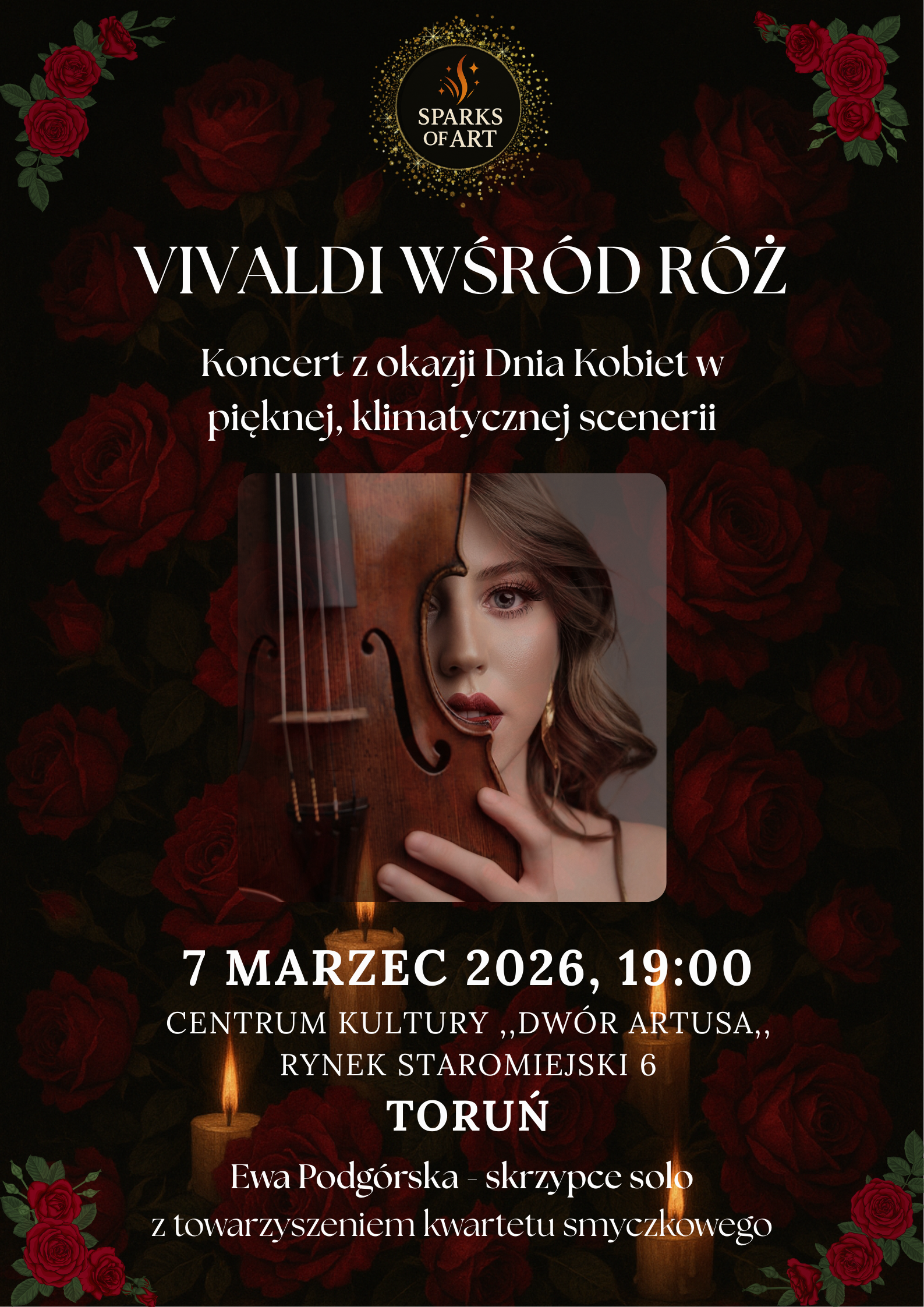 Partię solową wykona Ewa Podgórska — skrzypaczka koncertująca w całej Polsce, założycielka „Sparks of Art” i inicjatorka projektu „Vivaldi wśród róż”, której towarzyszyć będzie kwartet smyczkowy „The Sparks”